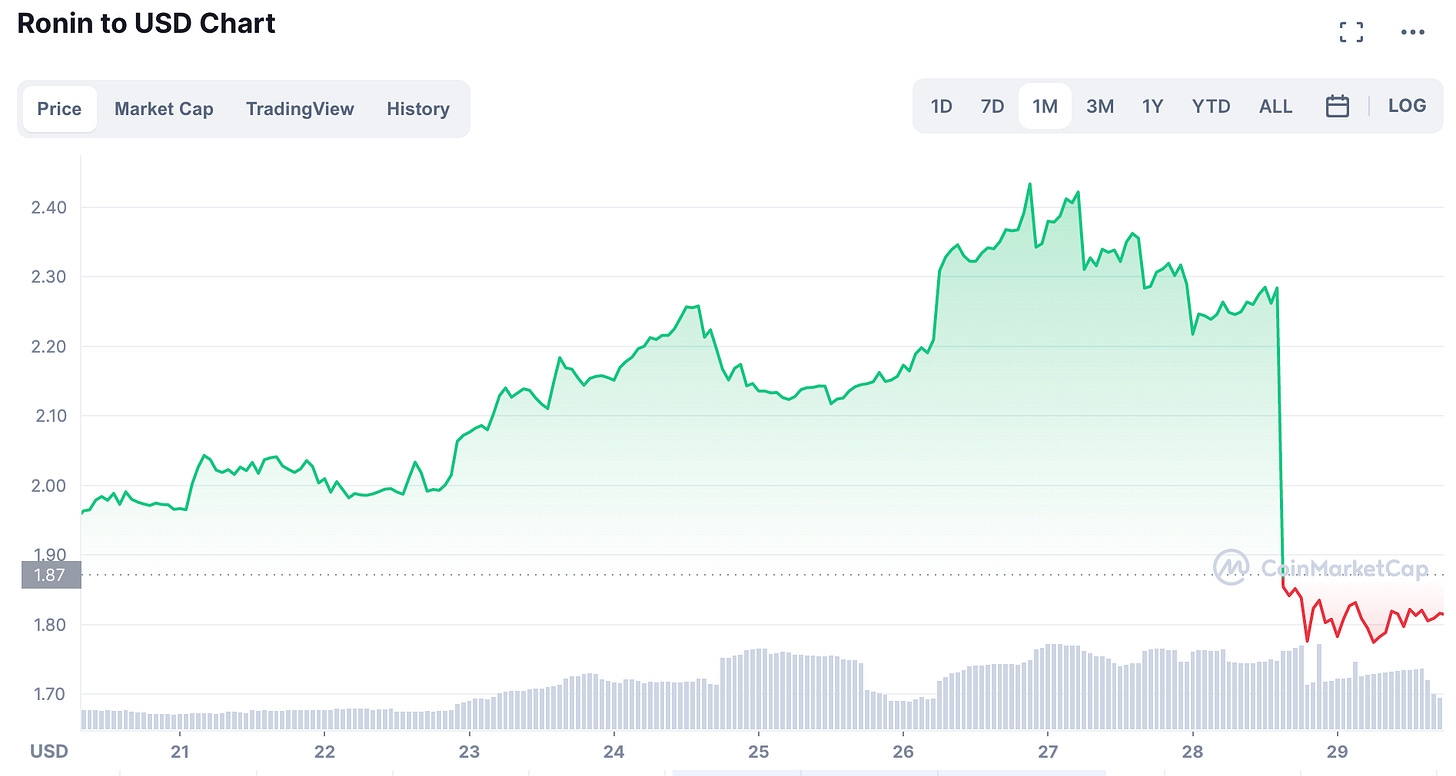 There isn’t any way to know whether this happened or not, of course. But we can watch the Ronin to USD price chart and wonder what the hacker must have felt as they watched the market climb right through their attack without noticing. In trading being right but too early is the same thing as being wrong.