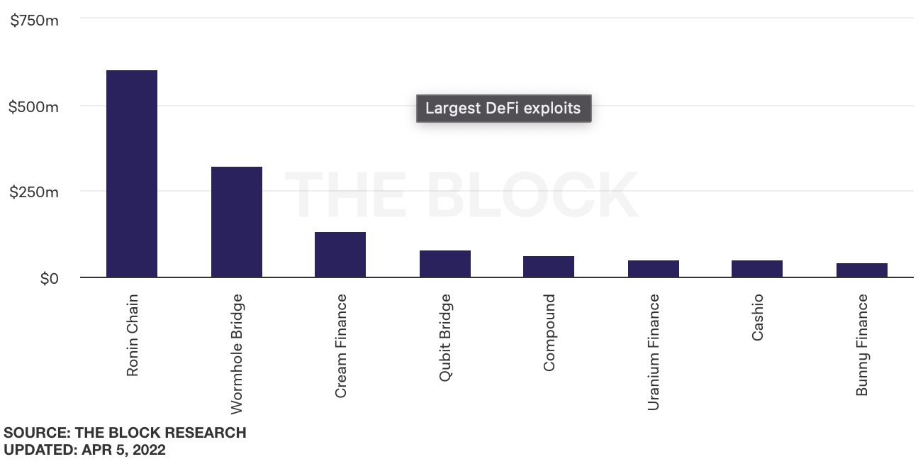 Unfortunately 4 of the 9 validator nodes were all controlled by Sky Mavis, the company behind Axie/Ronin. The attacker was able to compromise those nodes all at once along with one other validator, giving them a 5 of 9 majority and control of the system. It was as though they had the key to every vault — on Wednesday March 23rd simply emptied the bridge accounts of all 173,600 Ethereum and 25.5M USDC, collectively worth ~$625M at the time. That gives Ronin the dubious privilege of having suffered the largest DeFi hack of all time.