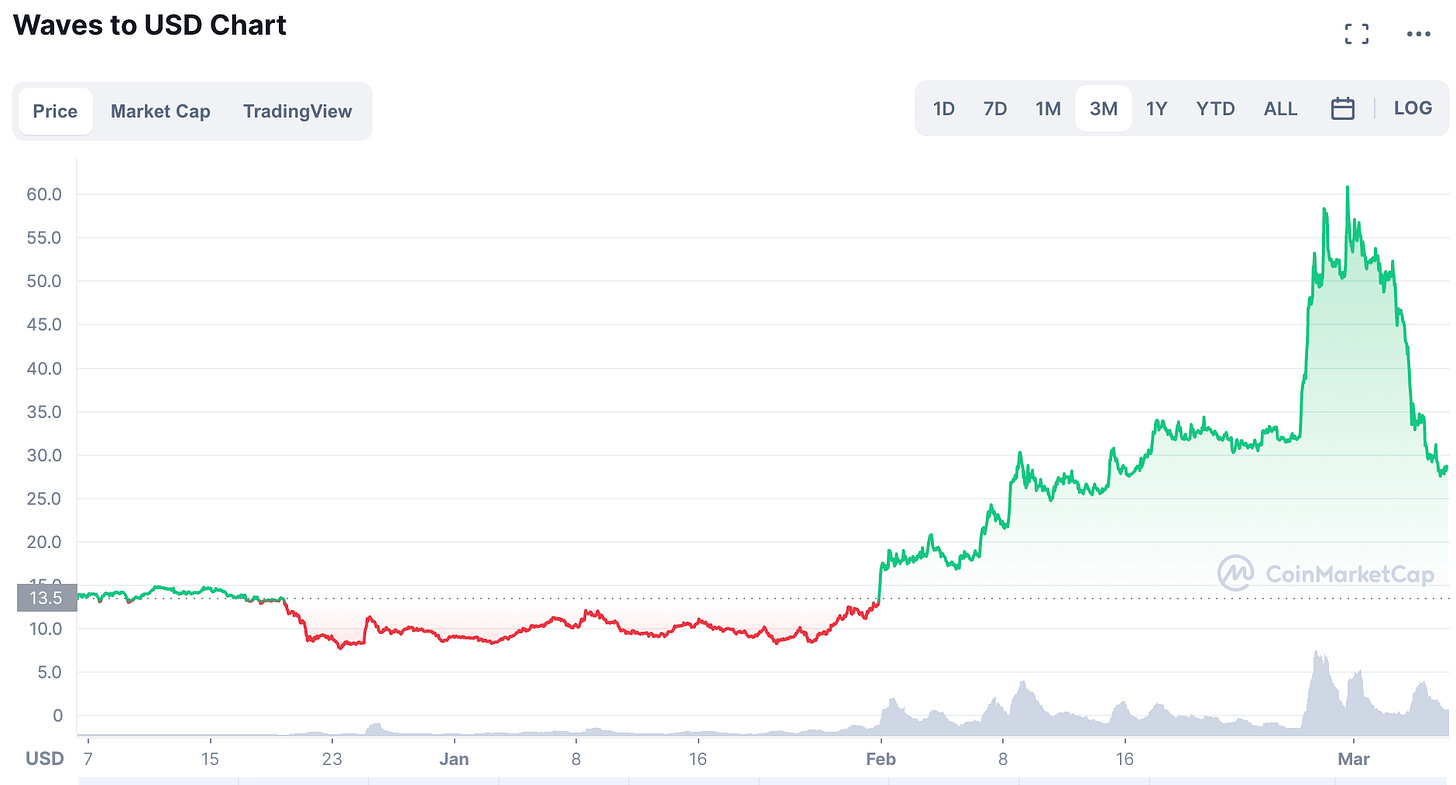 WAVES is the equity token of a Russian algorithmic stablecoin called USDN. It is conceptually akin to Terra/Luna (which we talked about in March). One of the many strange side effects of the Russian invasion of Ukraine is that it caused some crypto investors to seek out the "Russian" version of various platforms — and one of the beneficiaries was WAVES, whose market cap rose ~6x in ~2 months. The team then borrowed against that growth in price to buy more WAVES and artificially drive the price up further. If you’re curious about the details, this thread is an excellent summary:
