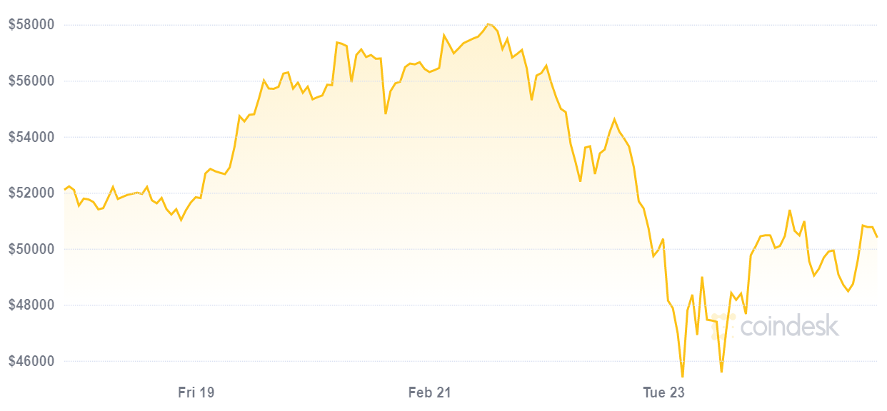 Bitcoin experienced its second major drawdown of the bull cycle this week, dropping more than ~20% from ~$58k/btc to almost ~$45k/btc.