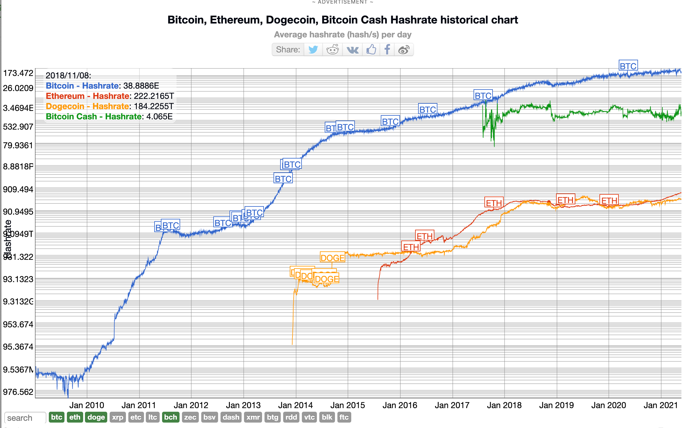 Here is how much network security Bitcoin provides compared to a few other major currencies. The chart is scaled logarithmically because if it was linear none of the other hashrates would even be visible.