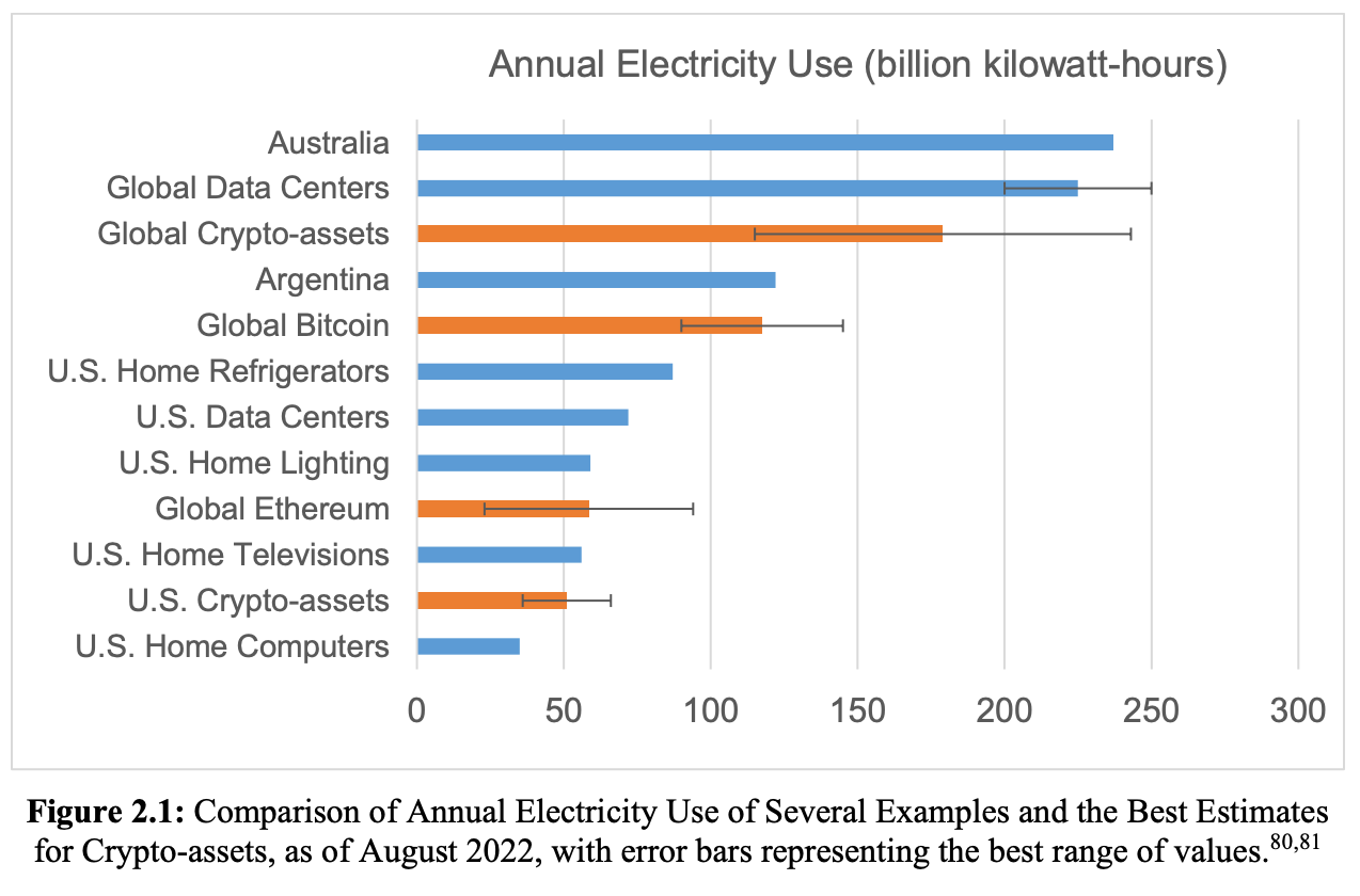 Worse, the report materially misunderstands (or misrepresents) the costs and consequences of proof-of-work mining. Weâve talked before about how much energy Bitcoin mining actually uses, how it uses that energy and the complicated impact that Bitcoin has on the environment overall. Iâve also written about how proof-of-stake is actually much worse for the environment than proof-of-work and how proof-of-work actually subsidizes investments into renewable energy. Most importantly Iâve written about why we shouldnât be policing energy use in the first place. Regrettably it seems no one at the OSTP is a Something Interesting subscriber yet.
