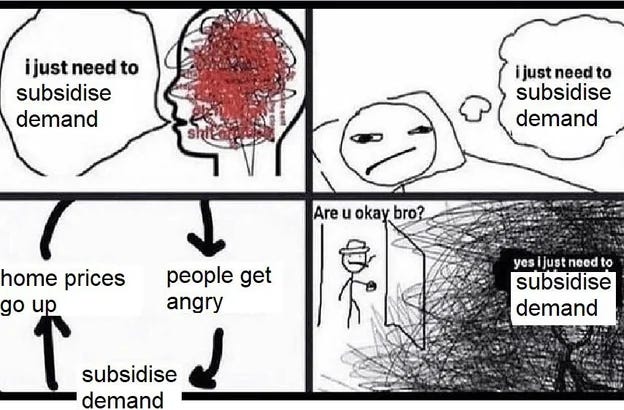 Because the simple and obvious solution to the housing crisis is taboo, our political leaders make empty promises about how they will somehow make housing affordable without making any existing houses cheaper.