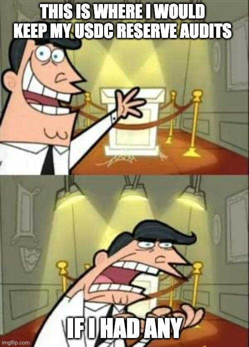 Unfortunately since then USDC has grown 5x in market cap and Circle started offering USDC accounts with suspiciously high interest rates considering the dollars were just supposed to be sitting idle in a vault. Circle then skipped its March audit without explanation. The public launch is scheduled for the beginning of the quarter, so they can ride the lingering impression that they are 1:1 backed without disclosing anything about the actual risks to depositors until end of November.