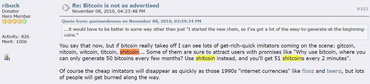 Today is the 12 year anniversary of the coining of the word shitcoin: