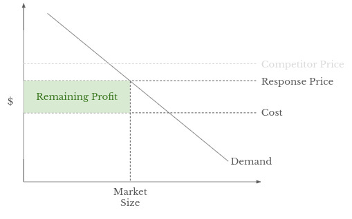 But the first company’s hands are not tied. They, too, can undercut their competitors price, once again reducing the available profit margin, increasing the size of the market and taking back all the customers.