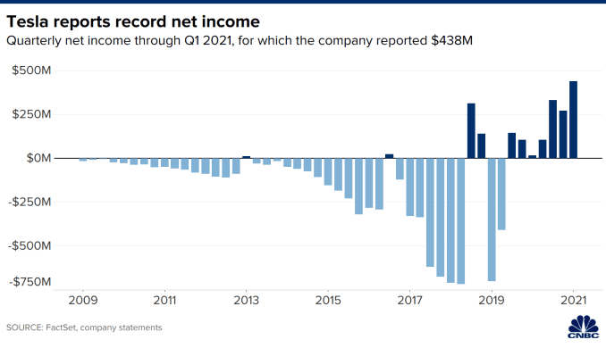 Being generous in our interpretations we could assume that this is just a part of rebalancing their portfolio after Bitcoin significantly grew in value. It’s possible they have risk mandates or other portfolio targets that would automatically cause them to draw down on their Bitcoin holdings. But it is disconcerting to realize that almost ~24% of Tesla’s record breaking profits this quarter were from the sale of digital assets rather than physical ones.