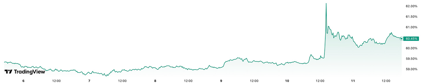 The fact that Bitcoin just weathered a market-wide panic without ever falling below $100,000 is significant and frankly kind of astonishing. $100k/BTC is now a battle-tested floor price that the market will remember. That’s a sentence I could not have imagined writing when I started Something Interesting in 2020.