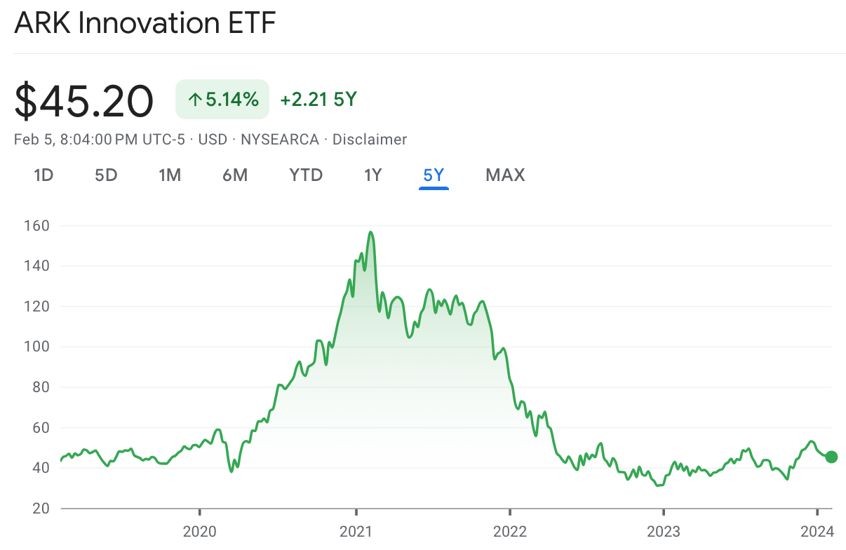 Cathie Wood’s ARK published its annual Big Ideas report where (among other things) they estimated the optimal Bitcoin allocation in 2023 as ~19.4%. The same report estimated an optimal allocation of ~6.2% in 2022. Let’s just check how well ARKK performs using its own financial advice … ahh, well. Nevertheless.