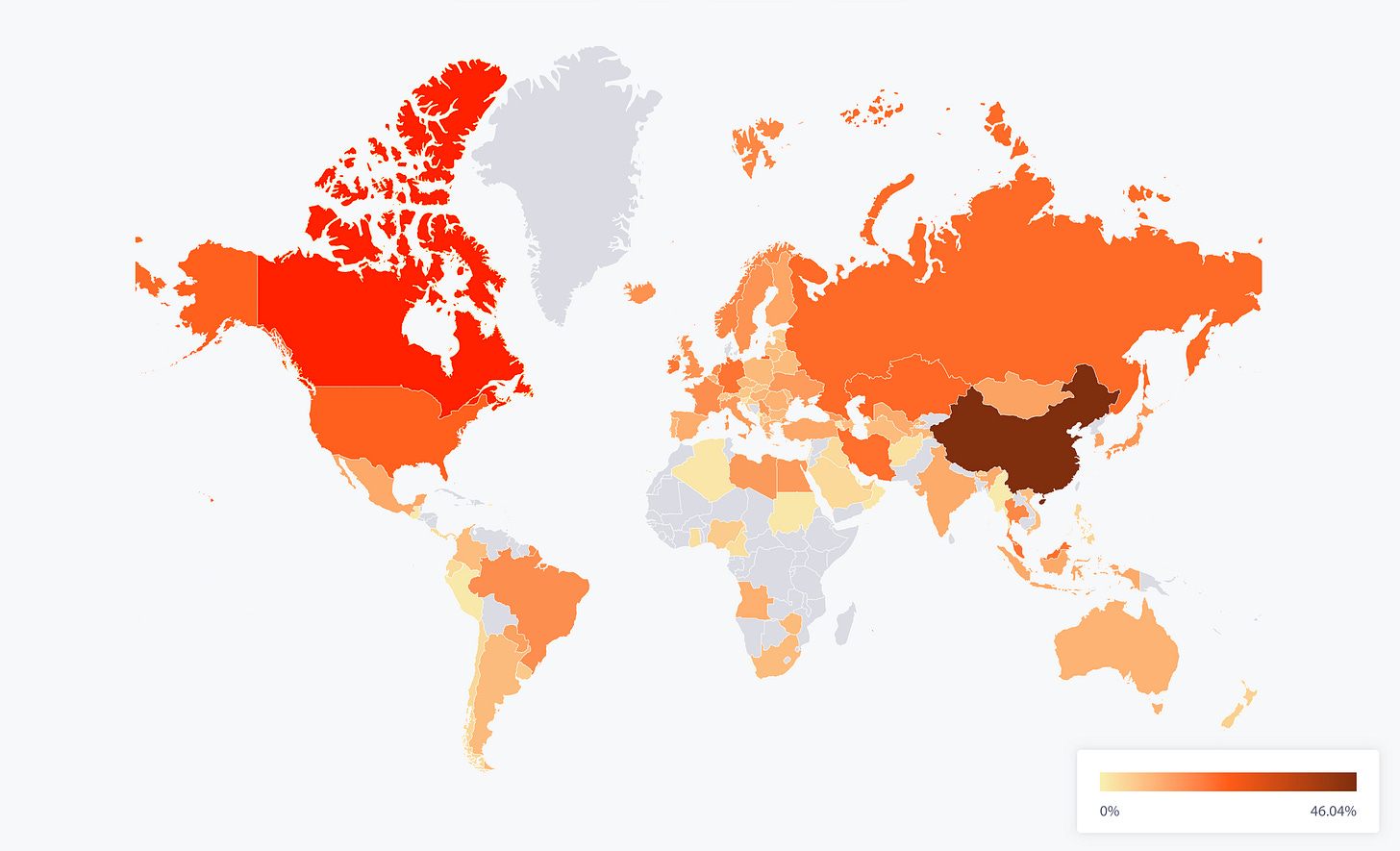 During that time China’s absolute hashrate was steady while the rest of the network nearly doubled, suggesting that most mining operations were already migrating away from China well before the recent crackdown on Bitcoin mining. This is where mining power is distributed globally today: