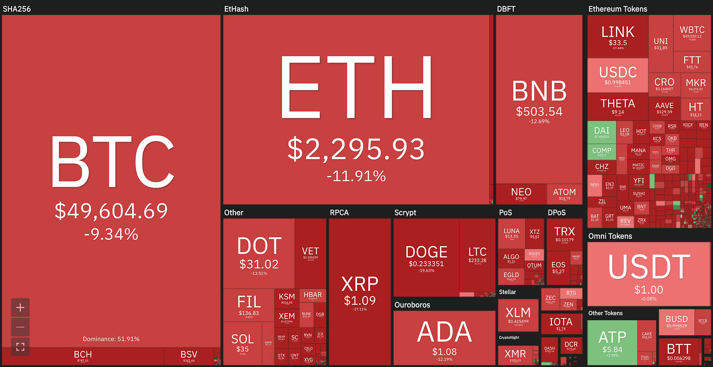 Still there are reasons to be concerned. This is the first time that Bitcoin has closed below its 50 day moving average since ~$10.5k, meaning that momentum is genuinely slowing. During roughly this time in the bullrun of 2017 Bitcoin’s price reached ~$2k/BTC and was stuck there until around August. The blackout in Xinjiang did not actually obliterate half the network, but it does look like just over ~20% of the hashrate was knocked offline. That slowed down block creation which means Bitcoin fees are skyrocketing - doubling to almost ~$60/transaction at time of writing.