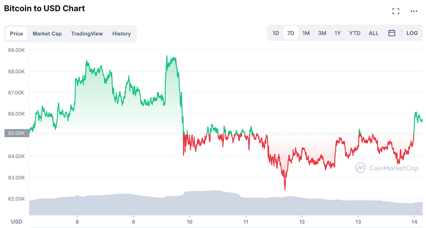 As expected the market for Bitcoin peaked last week at $69k/BTC before collapsing in a fit of giggles, first to $64k/BTC and then briefly down as low as $60k/BTC on some exchanges before recovering. Just before the weekly close this week a raft of sudden buying pushed the price up to $66.1k/BTC — the highest weekly close in Bitcoin history. Weekly and monthly close prices are tied to various Bitcoin futures contracts, so the surge of last minute buying this week was probably done by someone with a large long position in Bitcoin futures that closed this week. That suggests the deep pocketed traders are still expecting more movement up.