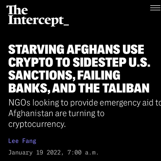 Of course even a cursory attempt at research would make it obvious that for some people crypto is a lifeline. It is possible to believe that the benefits of cryptocurrency are not worth the costs but asserting that it has no value at all is just willfully ignorant. And I do mean willful because maintaining the belief that crypto has no upside is critical for the rest of the argument:
