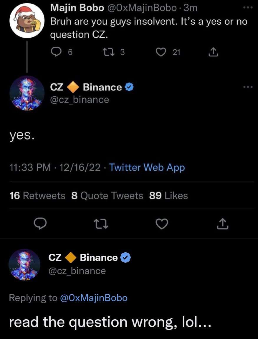 The concern here isn’t really that Binance is running out of money, per se. They have seen significant withdrawals but they also have significant reserves. The bigger worry is that Binance has historically allowed users to open margin positions using BNB (Binance’s native exchange token) as collateral — which is good for driving demand for BNB and supporting price, but bad because BNB is not a good asset to be liquidating to cover debts in a crisis. The buyer of last resort for BNB is Binance itself, which means that Binance has probably taken on excess risk by letting customers use BNB as the collateral for margin positions.
