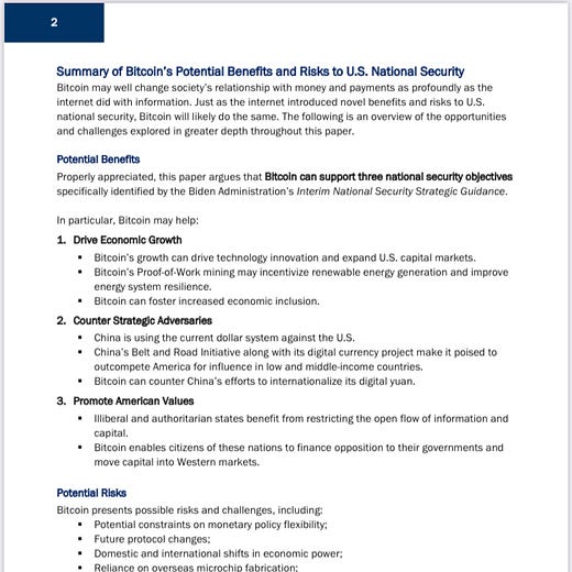 Senator Warren and I agree about one thing, though! Bitcoin absolutely is a matter of national security.