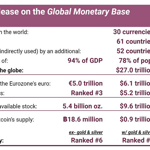 Even without crossing the symbolic $50k threshold the growth has been massive - Bitcoin is now the seventh largest currency in the world by monetary base: