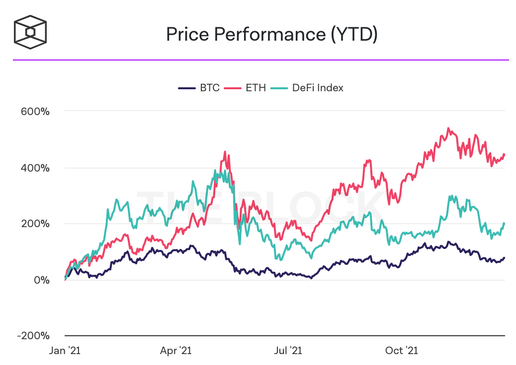 In retrospect it turns out that native ETH was the right 2021 crypto investment, assuming you don’t have a natural talent for timing dog coins or buying monkey jpegs. By comparison the S&P 500 index rose ~28% in 2021.