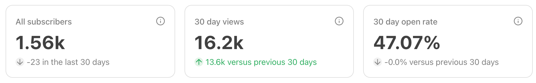 I have a semi-annual tradition at Something Interesting of doing an introspective update on the state and trajectory of the newsletter itself. [SotN Archive]. This is both an exercise in accountability for me and also an opportunity to acknowledge all of you.