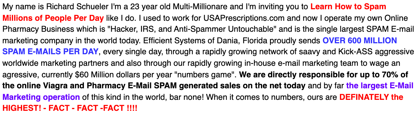 HEX was founded by Richard Heart (formerly Schueler) but HEX was not his first project. In the early 2000s he made millions spamming Viagra emails and then after he was successfully sued for it switched to offering courses teaching others how to master the trade: