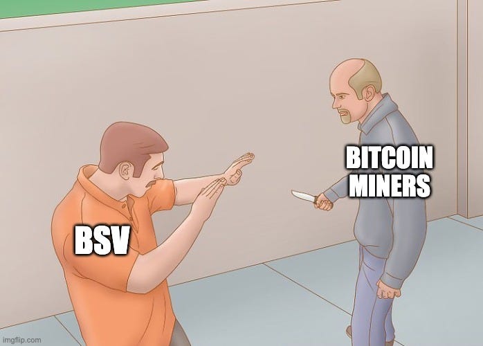 We generally avoid discussing BSV on Something Interesting because it is a scam and I have no desire to give it airtime. The BSV community is a cult of personality surrounding serial liar and tragicomic clown Craig Wright, who claims to be Satoshi Nakamoto and sells BSV as a way of profiting from that lie. BSV is worthless both as a technology and an investment. But that doesn’t mean we can’t learn from it.