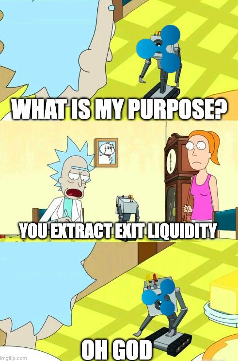 In other words, XRP only exists to create exit liquidity for insiders. It’s entire purpose is to transfer wealth from retail investors to Ripple Labs and the people and organizations Ripple Labs wants to pay.