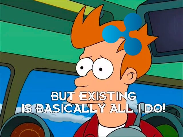 It feels like XRP should be a security of some kind but it honestly makes sense that the tokens themselves are not investment contracts. Contracts are a claim on whoever has committed to them — they don’t exist outside of the entities they obligate. If Ripple Labs ceased to exist then any contracts binding Ripple Labs would stop existing as well. But recall that one of the only things you need to know about XRP is that it legitimately does exist.