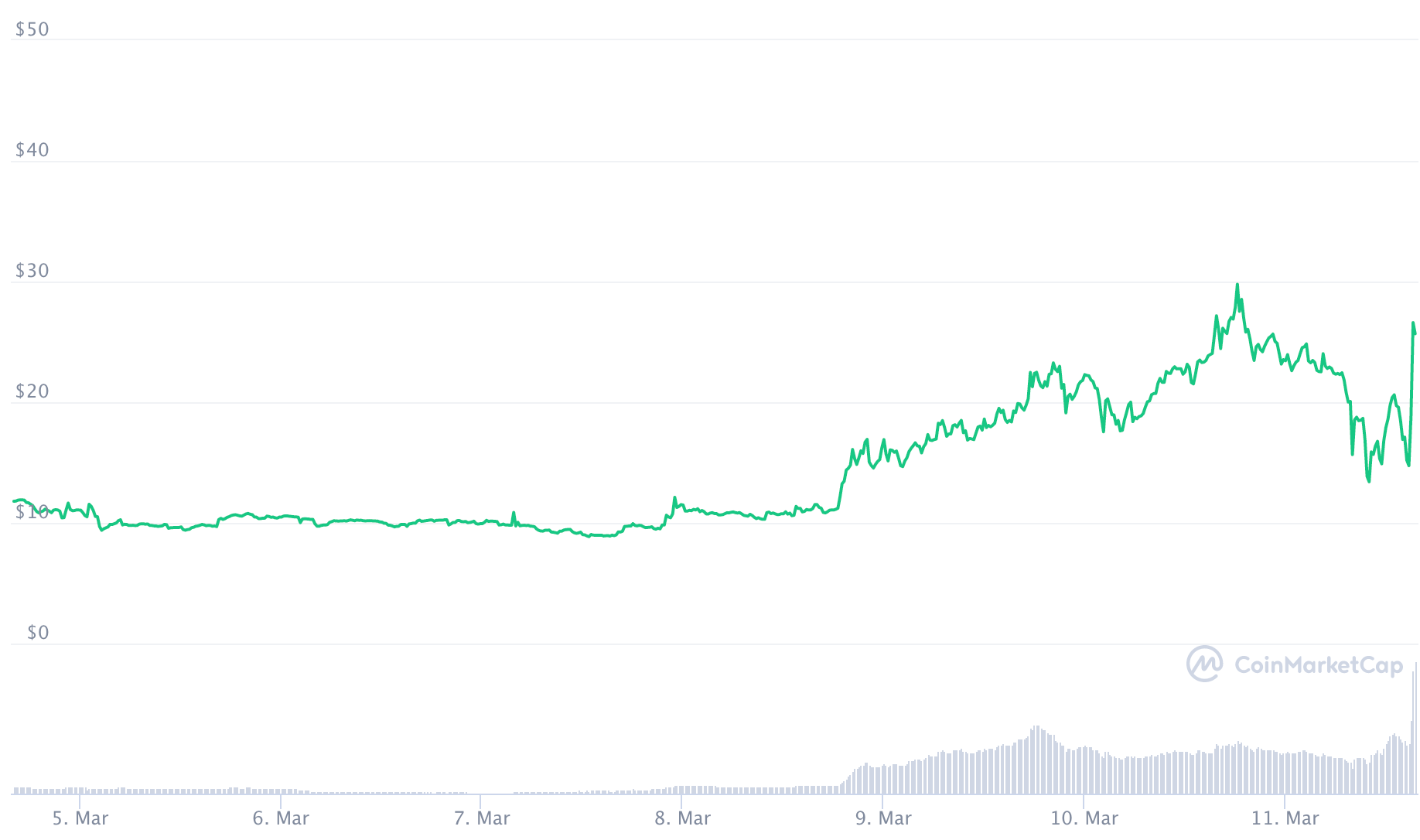 There is a token called B20 that represents fractionalized ownership of twenty previous beeple works. Interestingly, it does not seem to have responded especially to the news of his record-breaking sale. Here is the 7 day price action: