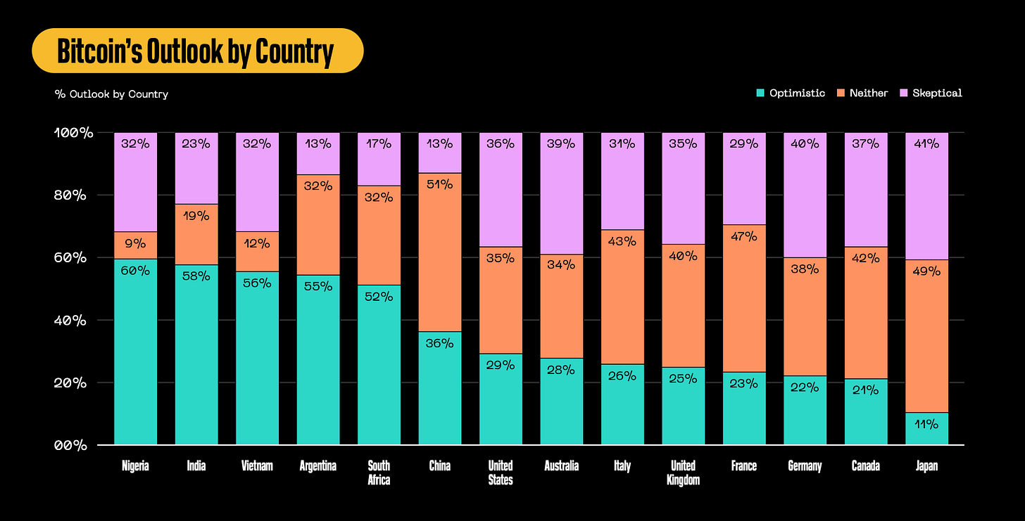 Block, Inc just released a fascinating set of survey results describing people’s knowledge and perception of Bitcoin around the world. Particularly noteworthy to me was how optimism around Bitcoin was so much stronger in countries with weaker economies and less stable currencies. The survey was of ~9500 adults worldwide inside Block Inc’s Cash App.