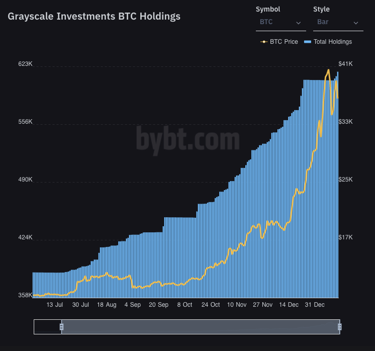 The Greyscale Bitcoin Investment trust has started accumulating again. On Saturday they picked up 5,132 btc (~$189M) or approximately six days worth of mining rewards. They now manage just over $22B of assets.