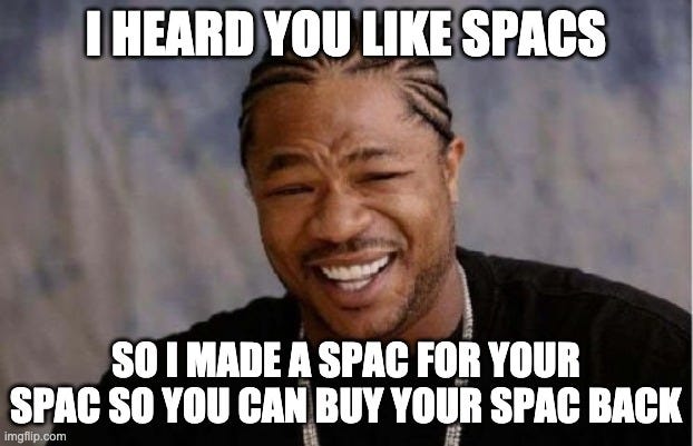 If you are a fan of recursive geometry and confusing financial structures, then check out this Bloomberg article about SPACs eating their own tail: a SPAC founded to re-acquire (at a significant premium) a company previously taken public by a different SPAC with the same founders.