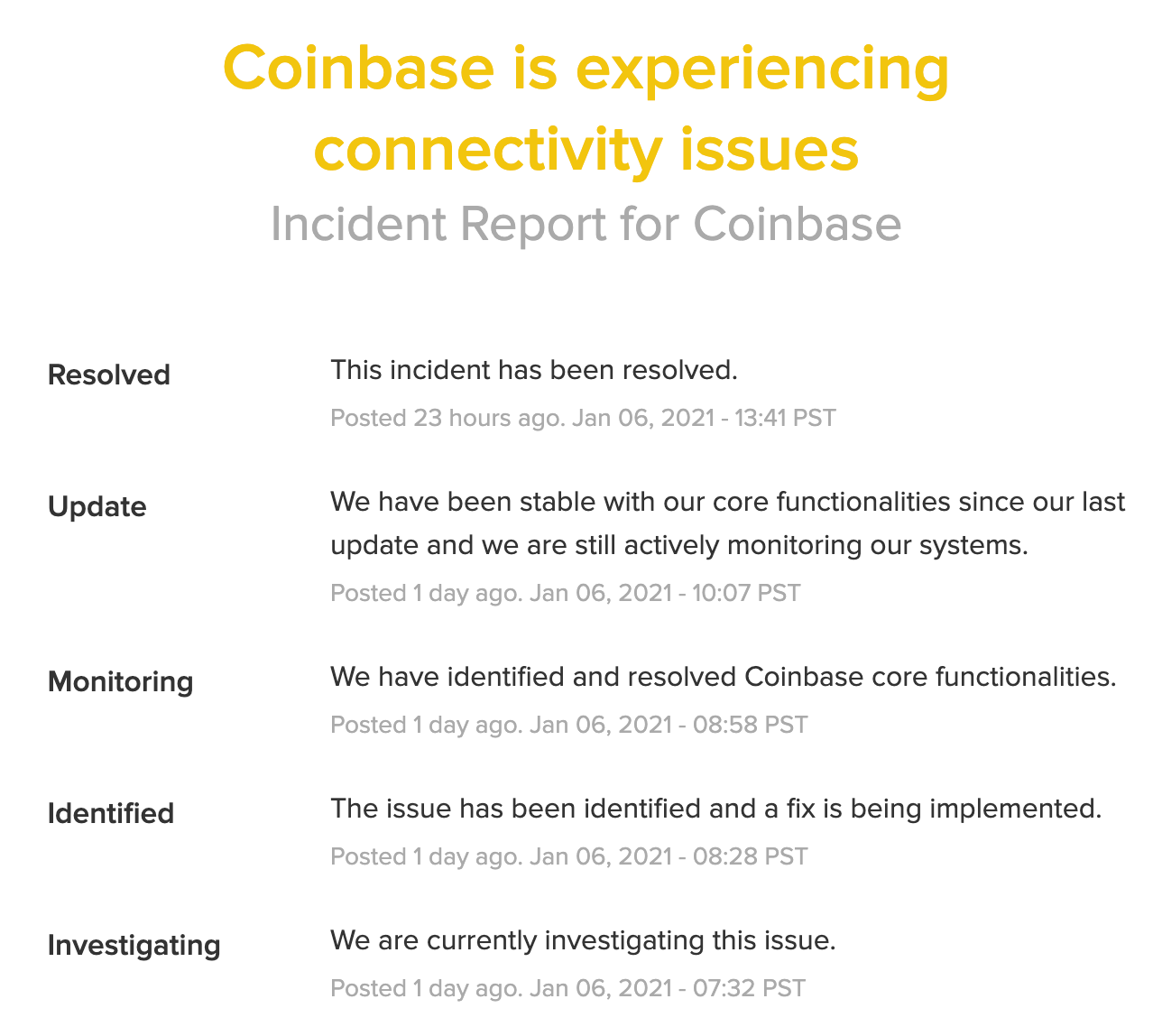 Coinbase for it’s part celebrated the Bitcoin bull run with the traditional outage: