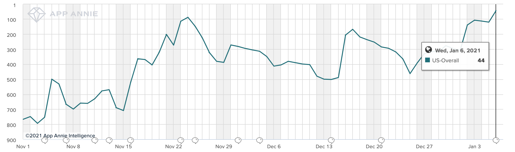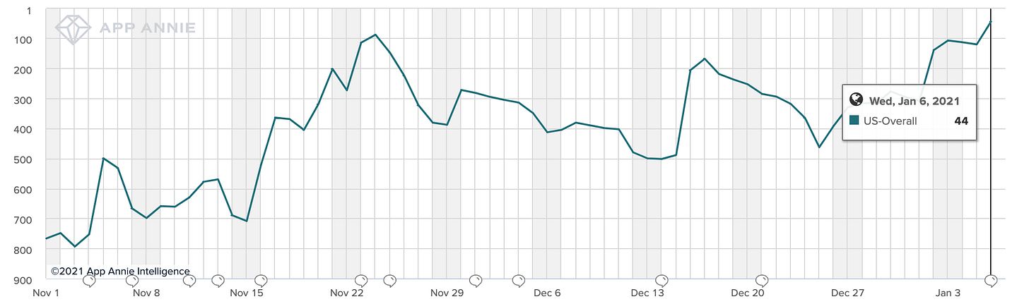 Here is how the Coinbase’s iOS App Store ranking over the last few months:
